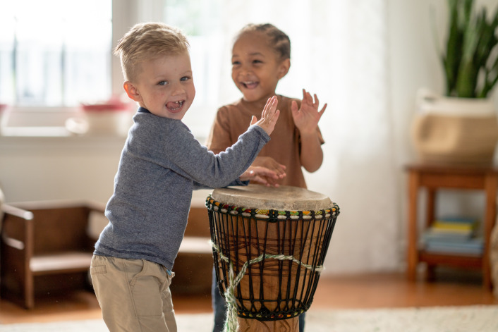 Spielerisch werden die Kinder an Musik herangeführt. Dabei wechseln sich Singen und Sprechen, Bewegung und Instrumentalspiel mit Triangel, Trommel und Co ab. Die kleine Gruppenstärke, mit max. 10 Kindern, erlaubt, auf die Entwicklung jedes Kindes einzugehen. Kreisspiele und Tänze führen zu erstem Gemeinschaftsgefühl und Gruppenerfahrung.